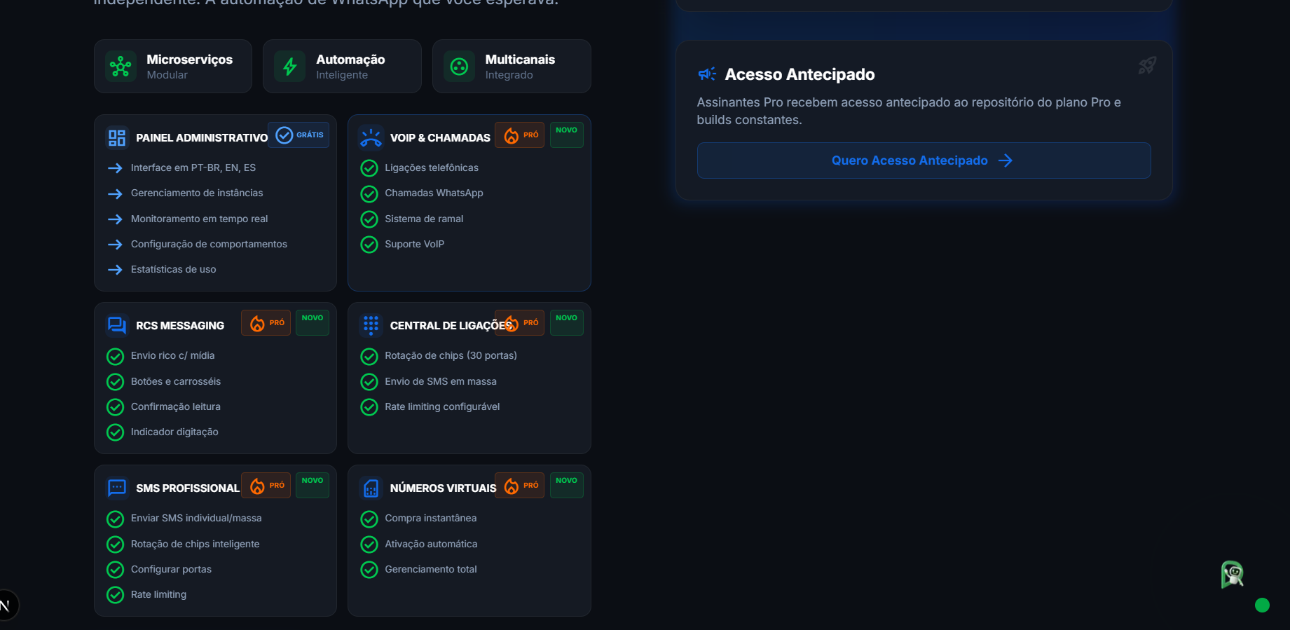 Reformulação completa em microserviços, modular, escalável e independente. A automação de WhatsApp que você esperava.